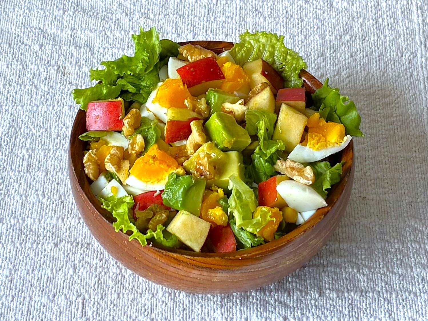 卵に含まれるビタミンAは肌を丈夫にして潤いを維持し、リンゴ・レモン汁に含まれるビタミンCはハリを維持、アボカド・胡桃に含まれるビタミンEは新陳代謝を高めます☆