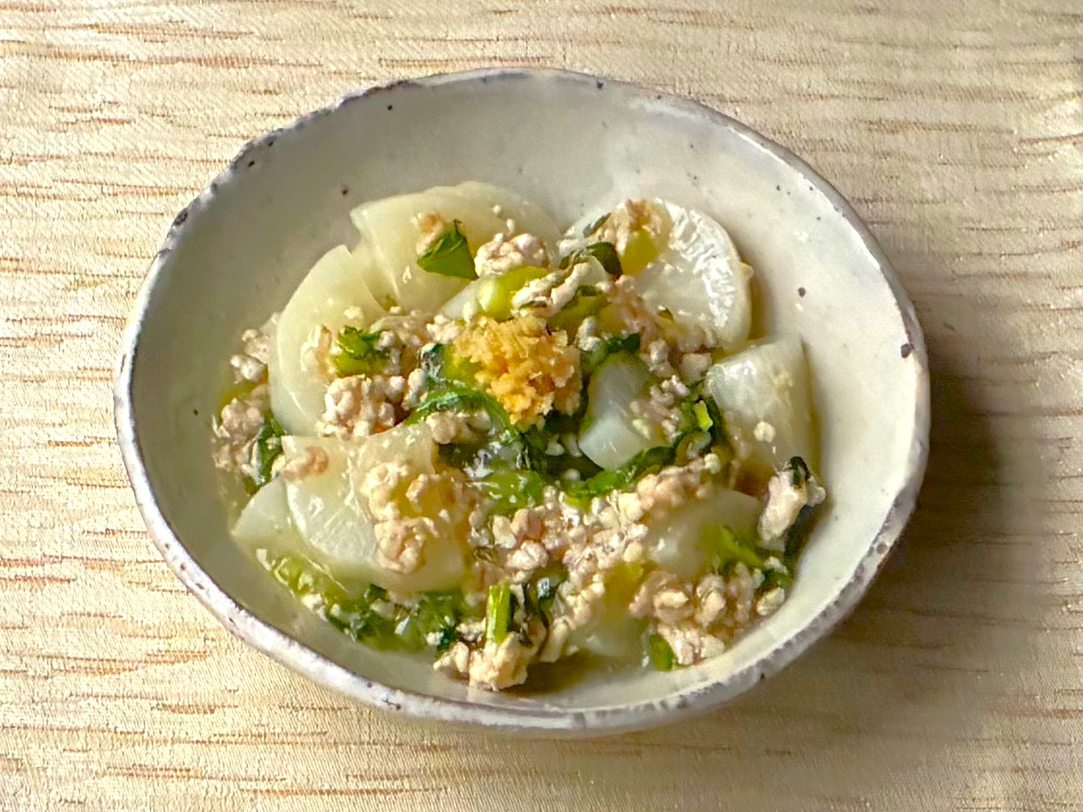②鍋に❶・鶏ひき肉・野菜だし・水を加え、火が通るまで煮る(中火で約10分)