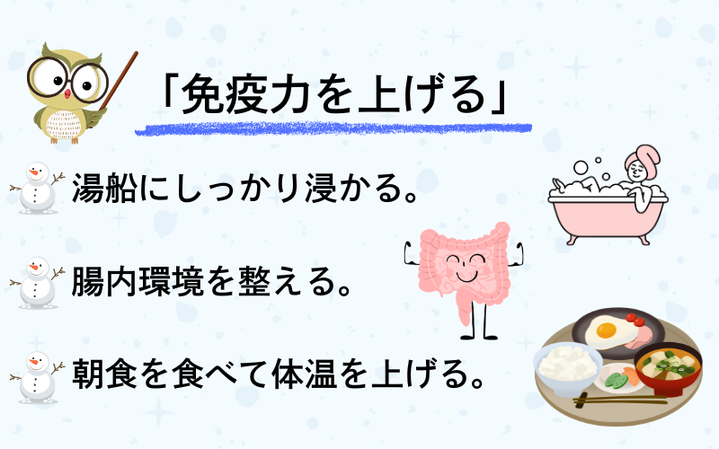 夜更かしせず早く寝ることでエネルギーの消耗を防ぎ、春からの活動がスムーズになります。