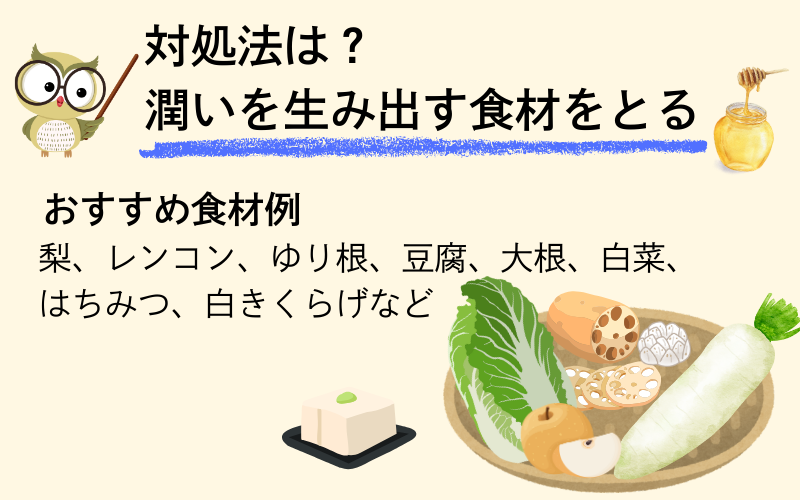 ほてり、のぼせがある、から咳がある、肌や目が乾燥するなど