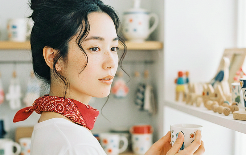 でも赤いバンダナをひと巻きすれば、味気ないシンプルコーデに華やかなアクセントが…。