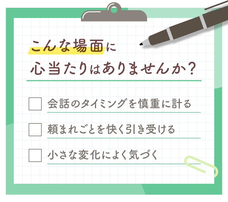 「今話しかけて大丈夫かな」「この話題でいいかな?」と一歩立ち止まり、聞き役になることが多い。
