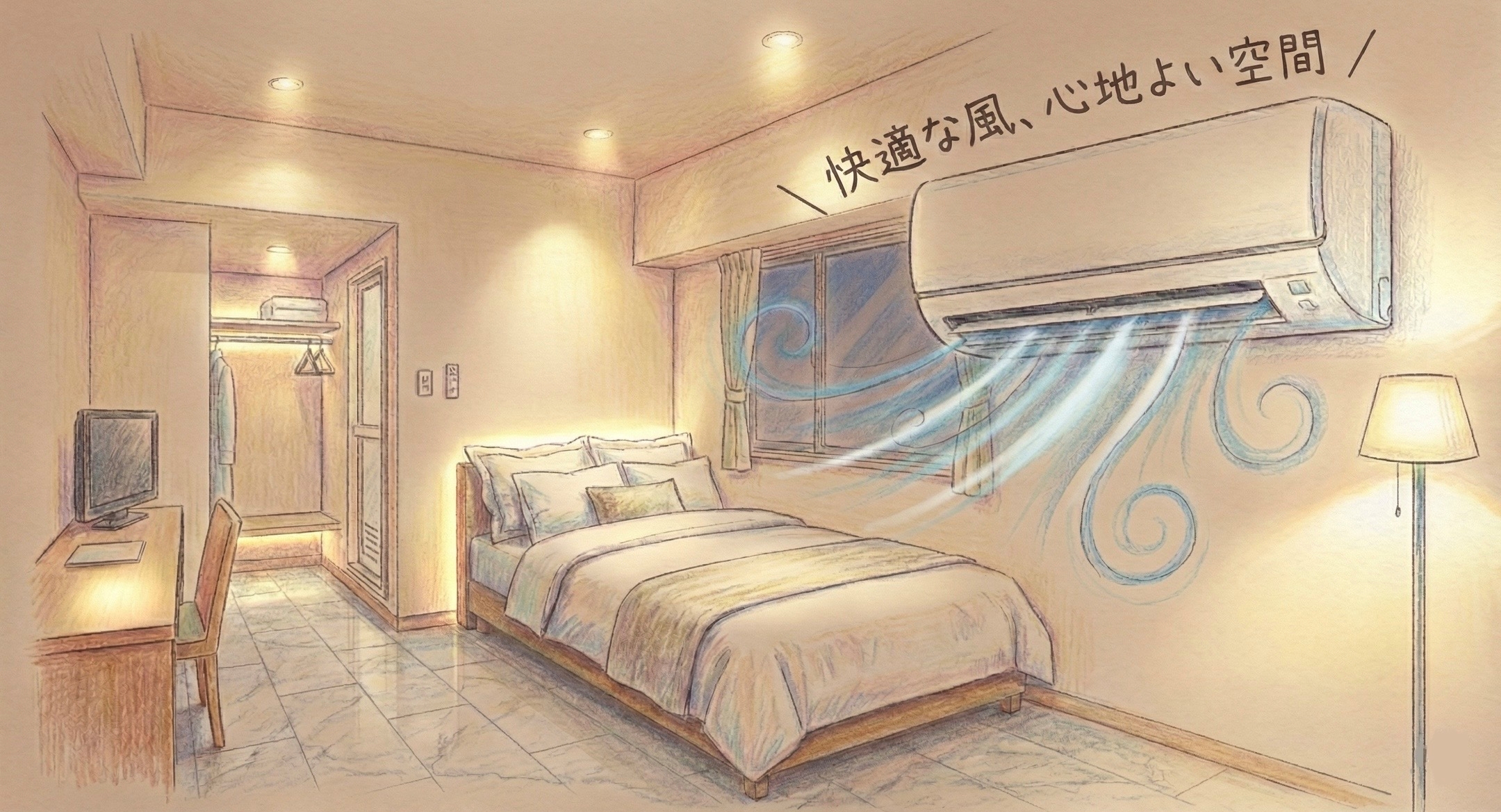 ➡ 各部屋に自分で温度調節のできるエアコンがあるホテルのみを提案してくれます。